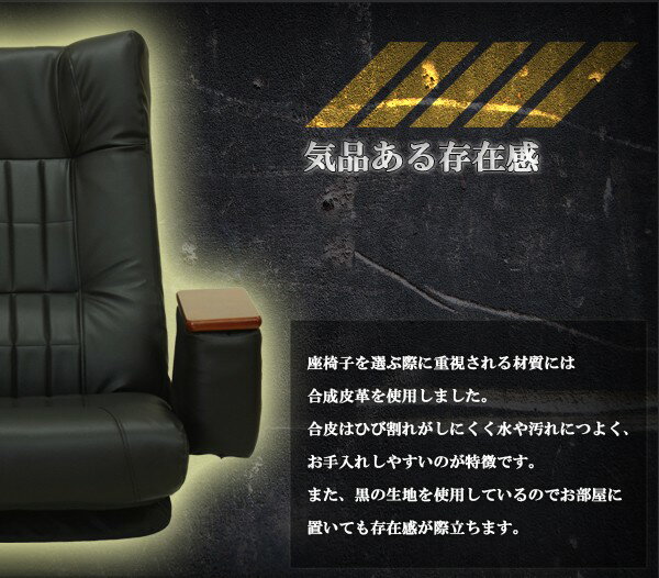 カラー:ブラック・気品ある存在感!!座椅子を選ぶ際に重視される材質には合成皮革を使用しました。