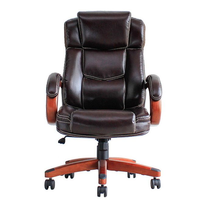 オフィスチェア デスクチェア パソコンチェア 高級感 合皮レザー キャスター付き カジュアル シンプル 新生活 おしゃれ デザイン性 天然木 エグゼクティブ ワークチェア いす イス 椅子 ブラウン 書斎 勉強 肘掛け付き ハイバック