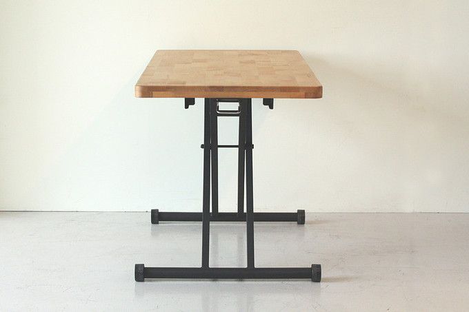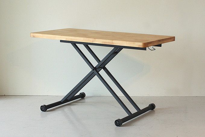 アルダー無垢材の天板で天然木の質感が味わえるリフティングテーブル。
